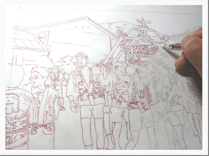 今回から、人物画(秋祭り風景)をステップで、解説していきますので、